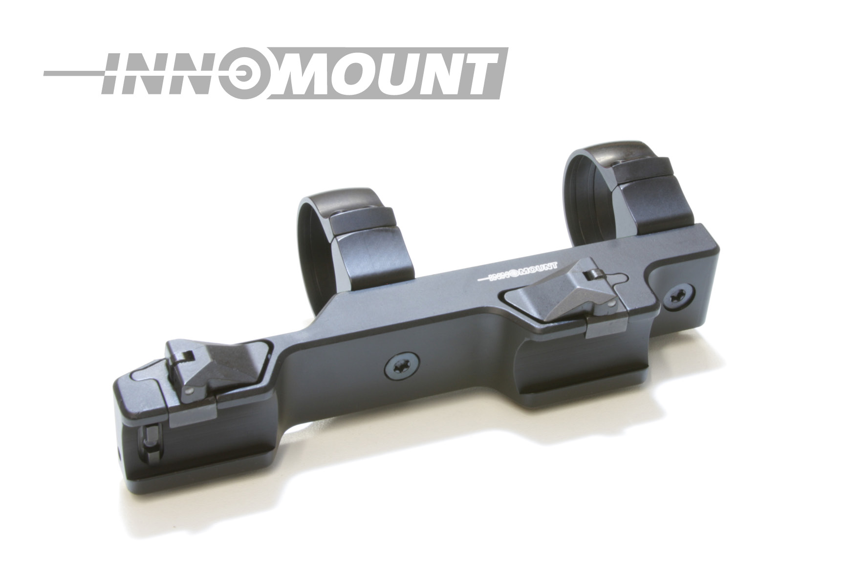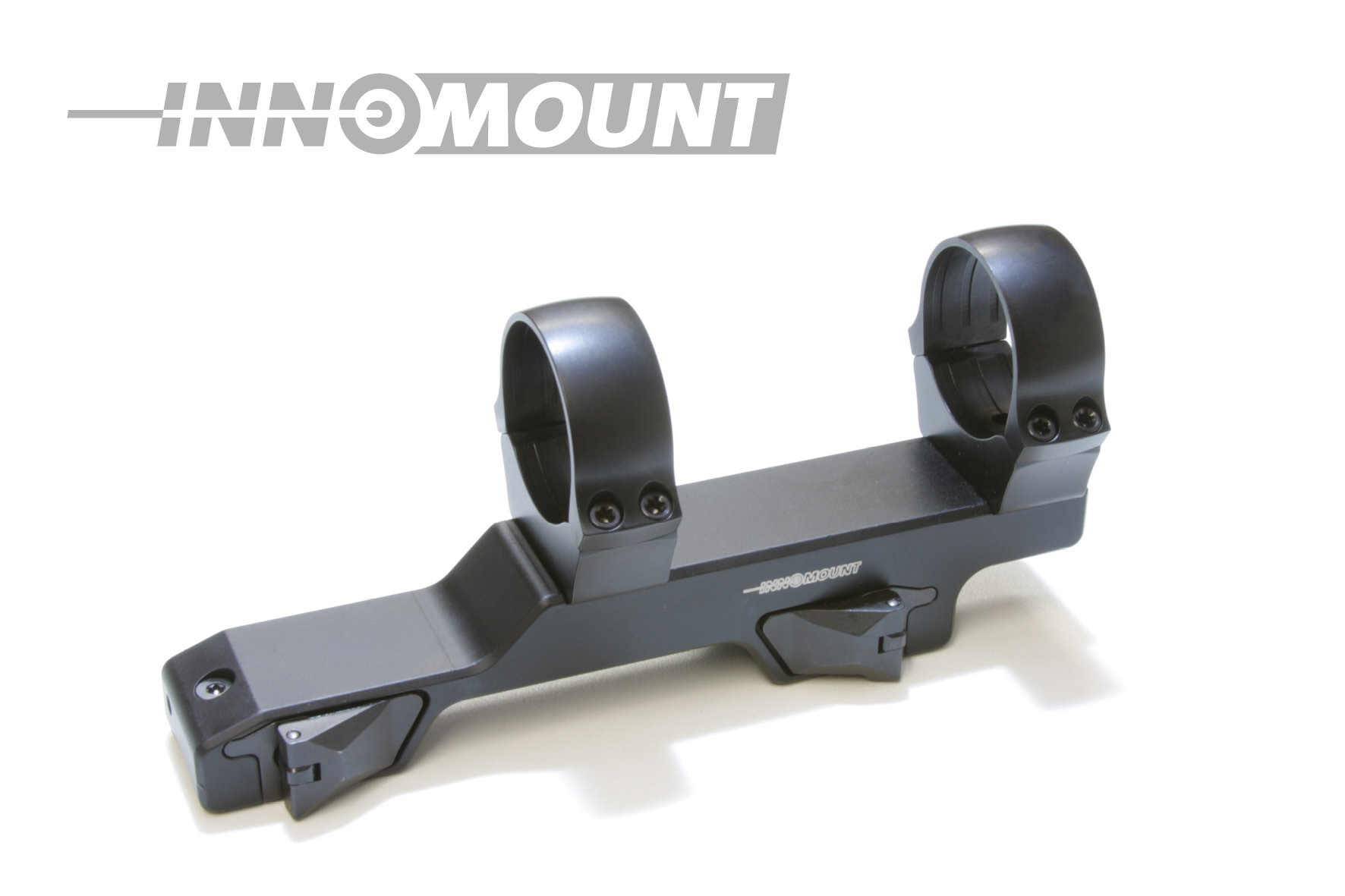 Die INNOMOUNT QD Schnellspannmontage ist mit zwei versenkbaren Verschlusshebeln ausgestattet. Der Vorteil liegt in der einfachen und schnellen, sowie fast werkzeuglosen Bedienung. Nach dem Auf – und Absetzen der Montage wird bei fachgerechter Einstellung der Klemmkräfte eine Wiederholgenauigkeit garantiert. Zwei per Daumendruck zu bedienenden Druckknöpfe ermöglichen es, die zum Schutz vor ungewolltem Lösen versenkten Verschlusshebel zu betätigen und diese zu öffnen.