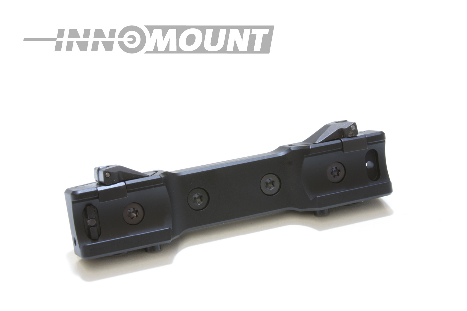 Die INNOMOUNT QD Schnellspannmontage ist mit zwei versenkbaren Verschlusshebeln ausgestattet. Der Vorteil liegt in der einfachen und schnellen, sowie fast werkzeuglosen Bedienung. Nach dem Auf – und Absetzen der Montage wird bei fachgerechter Einstellung der Klemmkräfte eine Wiederholgenauigkeit garantiert. Zwei per Daumendruck zu bedienenden Druckknöpfe ermöglichen es, die zum Schutz vor ungewolltem Lösen versenkten Verschlusshebel zu betätigen und diese zu öffnen.