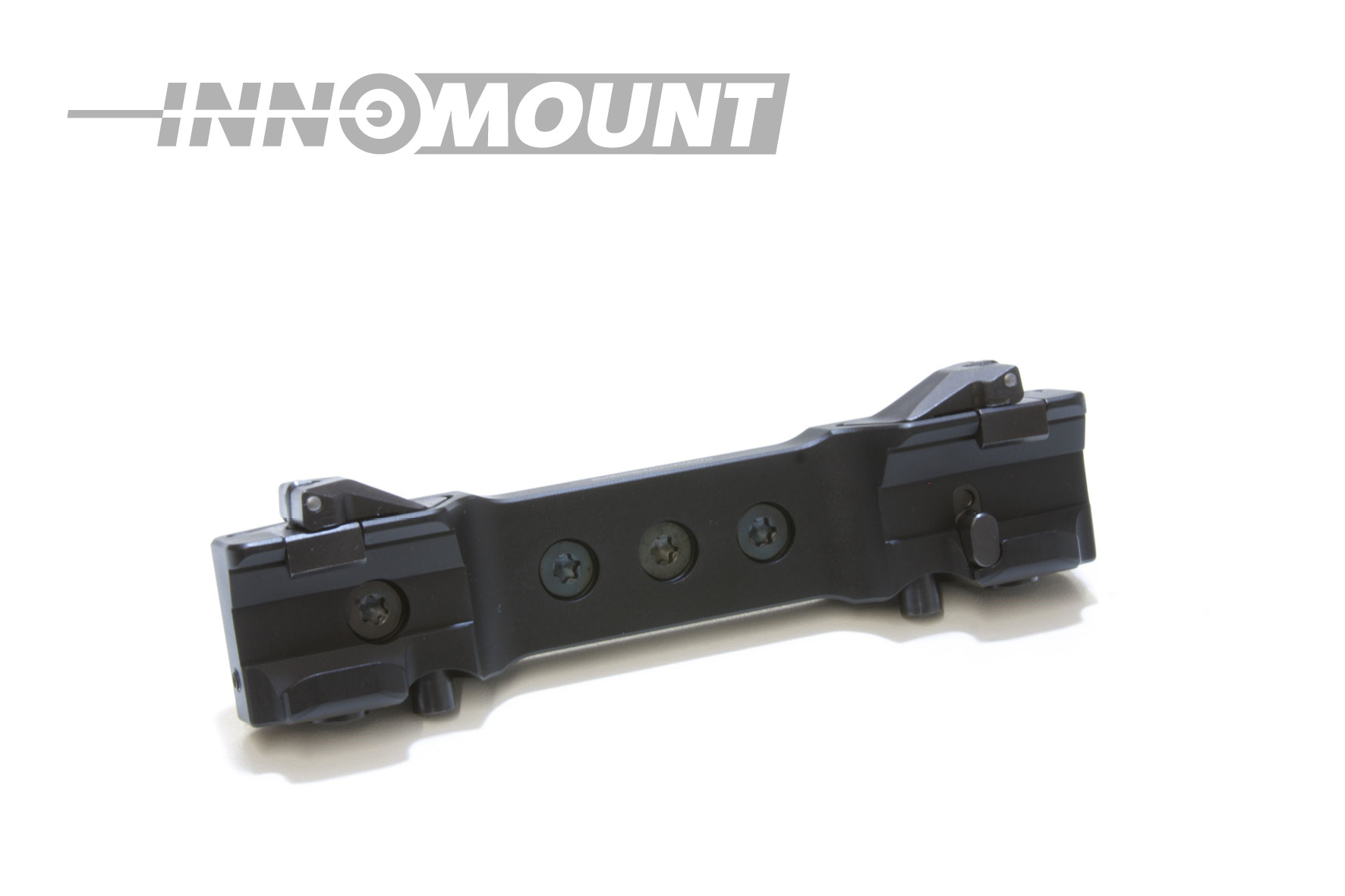 Die INNOMOUNT QD Schnellspannmontage ist mit zwei versenkbaren Verschlusshebeln ausgestattet. Der Vorteil liegt in der einfachen und schnellen, sowie fast werkzeuglosen Bedienung. Nach dem Auf – und Absetzen der Montage wird bei fachgerechter Einstellung der Klemmkräfte eine Wiederholgenauigkeit garantiert. Zwei per Daumendruck zu bedienenden Druckknöpfe ermöglichen es, die zum Schutz vor ungewolltem Lösen versenkten Verschlusshebel zu betätigen und diese zu öffnen.